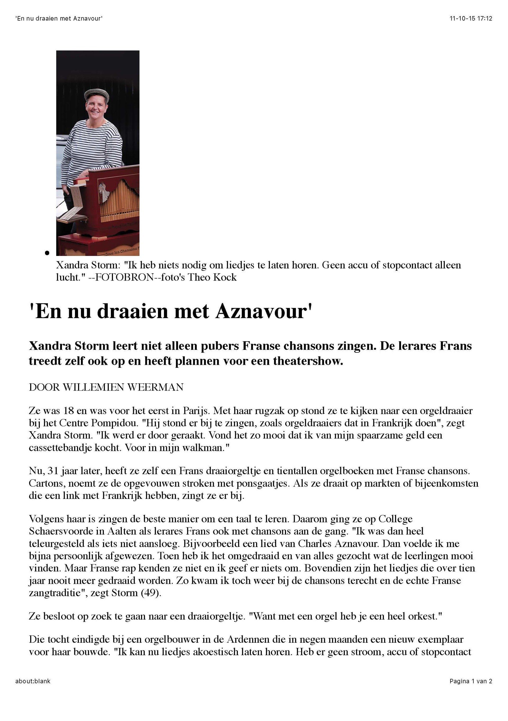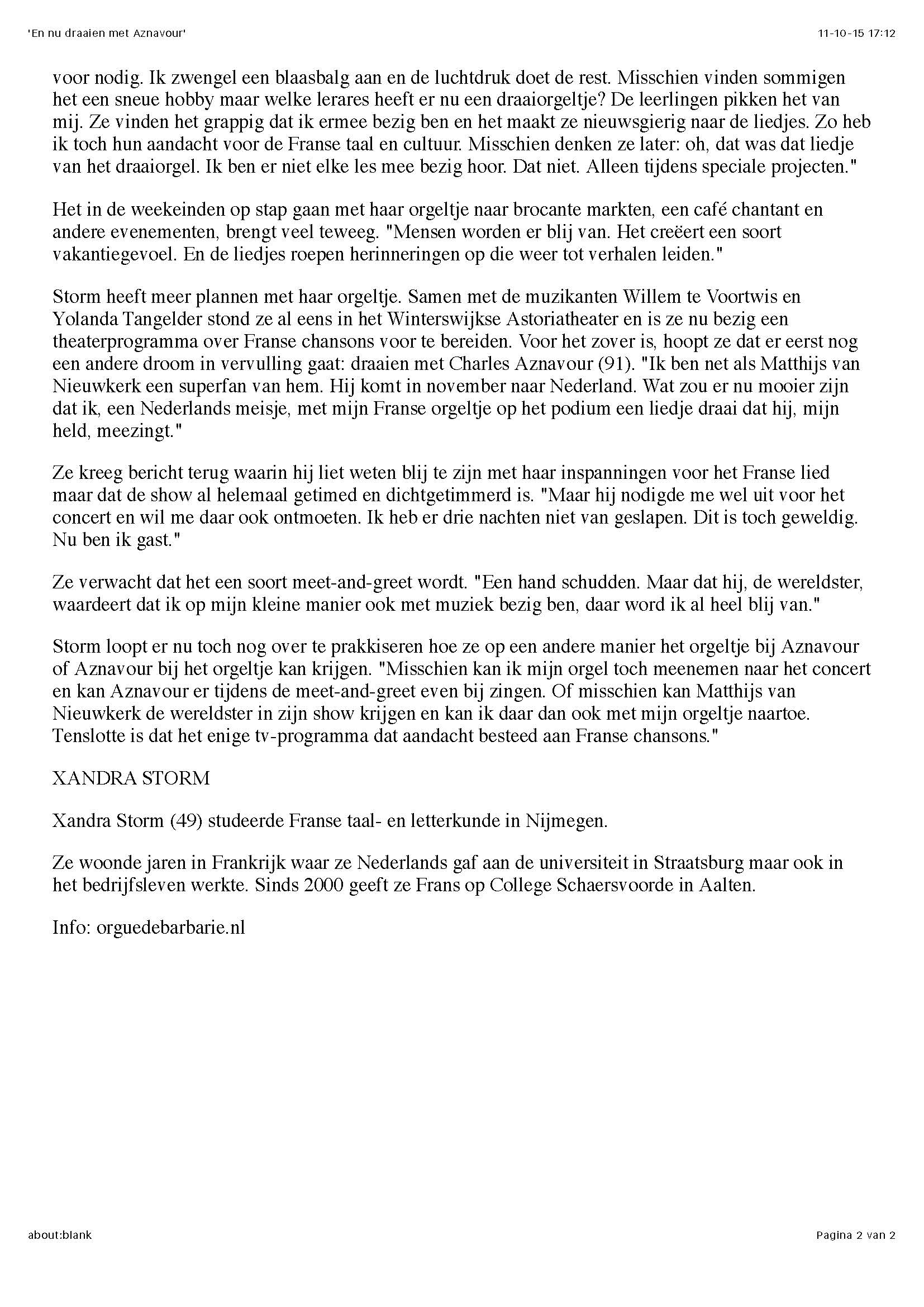 Er wordt in de pers ook gepraat over het Orgue de Barbarie.